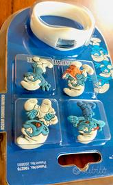 4x Charm/Statuette dei Puffi intercambiabili da applicare sul bracciale.