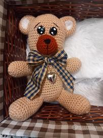 Dolcissimo orsetto in amigurumi realizzato interamente a mano all’uncinetto, curato nei minimi dettagli.