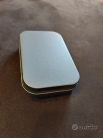 Orsetto in miniatura con cappellino, racchiuso in una scatolina di latta misura 6x9,5.