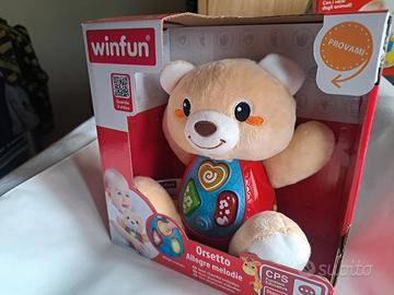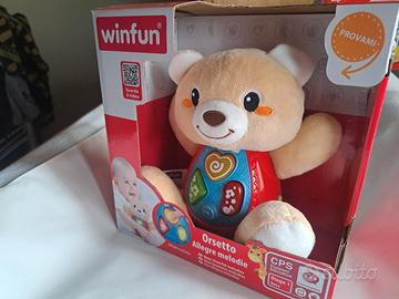 Orsetto Allegre Melodie Il divertente Orsetto ha 3 pulsanti luminosi che attivano frasi in rima e apprendimento semplice. Impara melodie divertenti e allegre in modo semplice, inoltre l'Orsetto ha diversi strani effetti sonori. Questi tipi di giocattoli stimolano i sensi del bambino e stimolano la sua curiosità