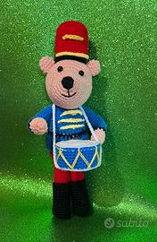 Natale è fonte di ispirazione, orsetto schiaccianoci, fatto a mano, uncinetto, tecnica amigurumi, alto circa cm.35, filato acrilico e cotone, imbottitura ovatta sintetica.