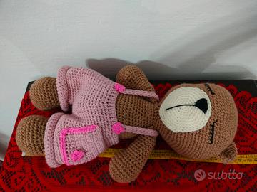 realizzato all’uncinetto con lana acrilica di alta qualità e imbottito con morbida ovatta sintetica, questo tenero orsetto è il compagno ideale per la nanna e le coccole.