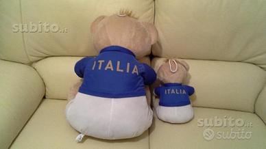 Orso ed orsetto peluches originali "Toys" con maglietta Nazionale Italia, l'orso misura 50 cm e l'orsetto 27 cm, vendo 40 euro.
