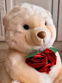 Orso peluche color crema/panna dal manto morbidissimo, di dimensioni abbastanza grandi (alto 38 cm, largo e lungo 30 cm)