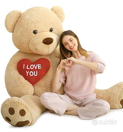 Orso Peluche Gigante con Cuore Rosso I Love You, alto 183 cm.