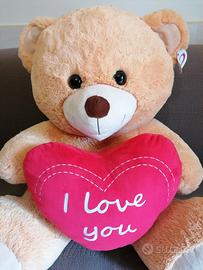 Vendo peluche San Valentino con etichetta e cuore rosso con scritta I Love You. Altezza: cm. 65 Larghezza: cm. 75 Profondità: cm. 60