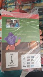 Gioco educativo Osmo Detective Agency, un kit che combina mappe fisiche e una lente d'ingrandimento con un'app interattiva su tablet. Scopo: Risolvere misteri viaggiando virtualmente in famose città del mondo. Target: Bambini dai 5 ai 12 anni. Contenuto: Include mappe fisiche, una lente d'ingrandimento e accesso all'app. Requisiti: È necessaria una base Osmo (venduta separatamente) per giocare.