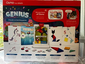 OSMO IS MAGIC: giochi di apprendimento divertenti e premiati. I bambini interagiscono con pezzi tenuti in mano reali e un iPad, dando vita a pezzi di gioco e azioni di un bambino (nessun WiFi necessario per il gioco). Una base Osmo è inclusa, un iPad non è incluso, entrambi sono necessari per il gioco. INSEGNAMENTO: organizzare oltre 100 design di puzzle per abbinare le forme sullo schermo (Tangram), risolvere puzzle di fisica creativa disegnando linee o posizionando oggetti davanti allo schermo (Newton), impara a disegnare qualsiasi cosa con abilità di disegno creativo (capolavoro), aggiungere, contare, sottrarre e sottrarre moltiplicare le piastrelle a pop il numero bolle risolvere equazioni matematiche (numeri), impara ortografia e vocabolario con immagini sullo schermo e selezione del liv COMPAGNE APPRENDE: abilità visive di problem solving, puzzle, matematica, aggiunta, conteggio, sottrazione, moltiplicazione, geografia, biologia marina, disegno a mano libera, acquisire capacità di ascolto, lettura, imparare phyphych sics & migliorare ortografia e vocabolario. Osmo vede e reagisce ad ogni mossa della vita reale. Orientato verso i bambini e l'amore per l'apprendimento. Età e capacità: dai 6 ai 10 anni in su. I giochi sono progettati per i livelli da principiante a esperti. Osmo consente la continuazione dell'apprendimento. Il feedback audio e visivo in tempo reale consente ai bambini di imparare attraverso la sperimentazione in un ambiente privo di stress. COSA C'È NELLA SCATOLA: Base Osmo e riflettore per iPad, pezzi Tangram, numeri piastrelle, piastrelle di parole, archiviazione impilabile per ogni gioco e 5 app di gioco: numeri, Tangram, parole, Newton e capolavoro. Compatibilità per IPAD: iPad compatibili: tutti gli iPad tranne Generazione 1-4 e iPad Mini 1. Riflettore iPad 2021 richiesto per: iPad Mini 6, iPad Air 4-5, iPad Pro 11" e iPad Pro 12,9" 3-5. La versione minima necessaria per iOS è iOS 11.