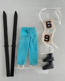 Outfit sci Big Jim Mattel All Star 1972 - originale completo con sci, scarponi, pantaloni azzurri e pettorale gara 69.