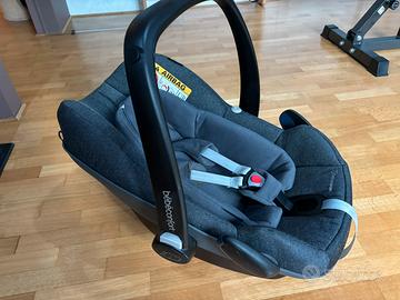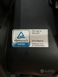 Ovetto conforme alla normativa vigente R129 i-size Omologato anche per viaggi in aereo. Cuscino riduttore interno amovibile. Capottina integrata a scomparsa. Completo di adattatori x telaio passeggino. Copertura antipioggia. Perfetto, usato pochissimo in quanto installato su seconda auto.