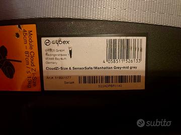 Ovetto Cybex Cloud Z i-size in ottime condizioni con scatola originale. Vendo per inutilizzo. Comprensivo di adattatori per Balios S e Sensor Safe.