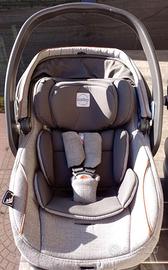 Qualche graffio sulle plastiche, ma i tessuti sono in perfette condizioni. Omologato i-size: dalla nascita fino a 83 cm di lunghezza, fino a 13 Kg (15 mesi). Con base ISOFIX.