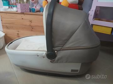 ovetto + culla usato pochissimo color tortora con cuscino anti soffocamento + carrello con ruote