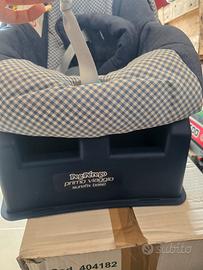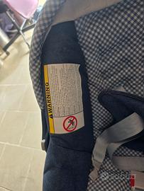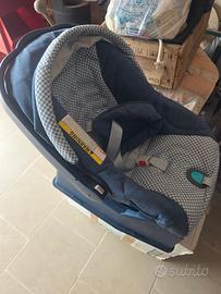 Ovetto/seggiolino auto per neonato, colore blu con fantasia a quadretti. - Tessuto interno a quadretti. - Cinture di sicurezza a 3 punti. - Manico imbottito per il trasporto.