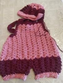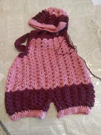 Pagliaccetto bimba 0..6 mesi in cotone con cuffia il tutto all. Uncinetto