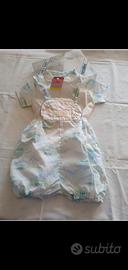 Grazioso pagliaccetto bimbo/a in cotone colori tenui. Nuovo.