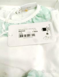 Articolo nuovo come da descrizione e foto ideale per corredino neonata primavera estate colore verde/bianco taglia 1 mese fino a 3 mesi/56 cm