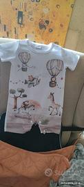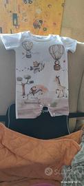 PAGLIACCETTO PER NEONATO DA 0 A 3 MESI IN COTONE, BIANCO CON DISEGNI DELLA GIUNGLA NUOVO MAI USATO