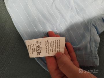 Pagliaccetto neonato con finto gilet integrato. Finto completo: maglietta, gilet e pantalone in cotone 100%. Taglia 6-9 mesi (68cm). Bianco e azzurro. Mai utilizzato. Solo lavato.