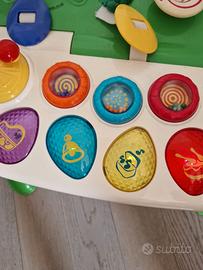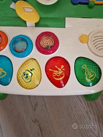 Palestra trasformabile in un tavolino a due altezze, con tre posizioni di gioco, pannello elettronico, attività manuali, effetti sonori, tre pendenti removibili. Età dai 3 mesi in su. In ottime condizioni e perfettamente funzionante!