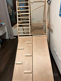 Solo ritiro a casa no spedizione. Palestra in legno per bambini completa di scivolo e altalena. La palestra è realizzata in legno di pioppo lucido di alta classe e verniciata con cera ecologica a prova di bambino. Il legno di Aspen è molto forte e flessibile. La palestra UgiBugi è un eccellente strumento di allenamento e gioco progettato per sviluppare i muscoli del bambino, il controllo dell'equilibrio, il coraggio e molto altro ancora. Questo è un posto fantastico per il tuo bambino. Consigliato da bambini da 6 mesi a 8 anni