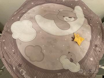 Tappeto rotondo (83 cm diametro) con struttura ad arco e cuscino soffice per i momenti sul pancino.