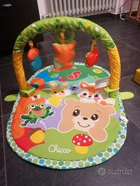 Palestrina chicco per i primi mesi del bambino dotata di tappeto archetto e tre pupazzi di cui uno con sonaglio. Dimensioni 80x60 ideale per Tommy time. L'archetto può essere messo anche nel lettino.
