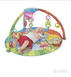 Tappeto morbido imbottito, dai disegni divertenti, con un morbido cuscino a forma di riccio. Il pannello elettronico interagisce con il bambino tramite effetti luminosi multicolore, suoni e musiche. Puoi collegarlo al tuo lettore MP3 per personalizzare la musica. Il pannello elettronico emette una luce multicolore con effetto dissolvenza, 25 minuti di musica continua ed effetti sonori preregistrati per accompagnare il bambino nei momenti di divertimento e relax.