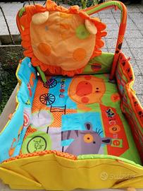 Palestrina con paretine, colorata e imbottita con cuscino ritraente un muso di leoncino, un archetto e pupazzetti per bimbi. Incluse anche le pareti laterali per irrigidire la struttura. Ottime condizioni. Misure 55x70x22.
