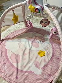 Dotata di un tappetino tondo ampio (83 cm di diametro) e un comodo cuscino ergonomico, questa palestrina è perfetta per il "tummy time" (tempo sulla pancia), incoraggiando lo sviluppo motorio e visivo del neonato durante le ore di veglia diurna.