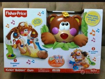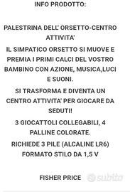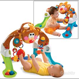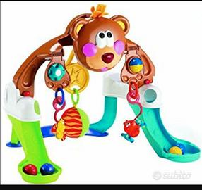 Palestrina dell'orsetto - centro attività. Il simpatico orsetto si muove e premia i primi calci del bambino con musica, luci e suoni. Si trasforma e diventa un centro attività per giocare da seduti. Con 4 palline e 3 giocattoli collegabili. Utilizzabile anche dopo i 12 mesi