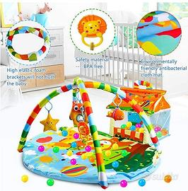 ??Sviluppo multisensoriale ? Il tappetino per scalciare e giocare sviluppa le abilità motorie , fini e grossolane così come le abilità cognitive. Il grande tappeto da gioco colorato fornisce una prima forma di apprendimento dei colori ai bambini. Include numerosi giocattoli supplementari che emettono suoni, stimolando l'udito e il tatto del bambino.
