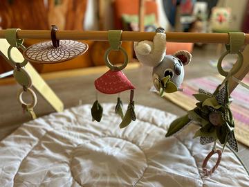Palestrina gioco per neonati. Fatta in legno e cotone, utilissima per lo sviluppo motorio e cognitivo dei piccoli. Come nuova.
