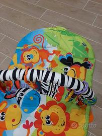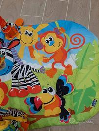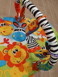 Palestrina coloratissima, tema zoo, con tre peluches che si possono staccare in modo da rendere la palestrina un comodo tappetino gioco dotato di divertenti sonagli