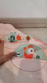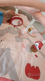 Questo morbido tappeto da gioco in cotone organico offre molte attività. Tre sonagli pendono dall'arco. I colori contrastanti e le numerose attività e scoperte risvegliano i sensi del bambino. Quando il bambino cresce e l'arco può essere rimosso, i sonagli possono essere attaccati al tappetino.