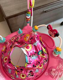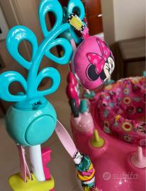 Bright Starts, Disney Baby, Centro Giochi di Attività Minnie Mouse Forever Besties con Luci e Musica, 10 giochi di attività, Sedile Girevole a 360°, Altezza Regolabile, 6 mesi+