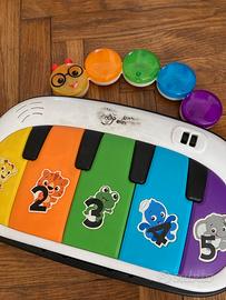 Palestrina Multiattività Musicale, Baby Einstein Varie modalità di gioco: Sdraiato, seduto, a pancia in giù o in su. + più di 25 minuti di musica e per fare conoscere al bambino parole in lingua inglese, tedesco, spagnola e francese Con 7 giocattoli rimovibili, tra cui un piano Magic Touch e 1 cuscino per bebè. i giochini rimovibili si possono apprendere, attaccare al cuscino o giocarci liberamente. È in buono stato, perfettamente funzionante. L'unica cosa è che lavandola il logo sul piano si è un po' sbiadito e sotto il piano la plastica è un po' spostata ma niente che influisca sul funzionamento o la sicurezza.