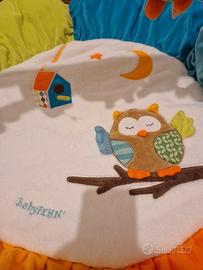 Palestrina per neonati in morbida ciniglia con bordi imbottiti, pulita e lavabile in lavatrice. In condizioni impeccabili, ha 5 giochini appesi che si possono facilmente staccare.