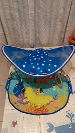Palestrina neonato di Nemo Disney con suoni e colori, dotata di giochino Nemo, Dory e specchietto, oltre a cuscinetto a forma di spugna. Perfettamente funzionante con musichette, simula anche il suono dell'acqua. È mancante di due giochini.