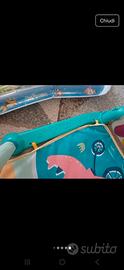Con tastiera musicale da usare sia coi piedi che con le mani e removibile da usare singolarmente.