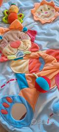 Palestrina per neonati e bambini piccoli, formata da un tappeto imbottito e struttura a due archi dove appendere piccoli pupazzetti (compresi). Sul tappeto ci sono diversi giochi sensoriali e visivi (specchietto, sonaglio con palline, animali con criniera sonora ecc). Compresi giochini e fodero con maniglia per un comodo trasporto. Lavabile. Utilizzata pochissimo, praticamente nuova.