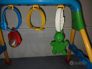 Questa Palestrina ha degli agganci apribili acui si possono collegare tanti giochetti .. oltre ai due che ci sono già. Il tappetino non c'e più.
