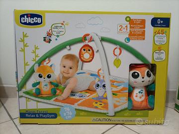 Vendo con confezione originale Palestrina Chicco Foresta Magica praticamente nuova. La Palestrina con archi è dotata di un tappetino imbottito 76x76 cm ideale per il Tummy Time. Ha 2 archi e 5 divertenti giochi pendenti, staccabili, tra cui una volpe di peluche elettronica ed offre 2 modalità d'uso: Relax, con luce e musica rilassante classica e new age (ciclo di 25 minuti) e Gioco, con luce intensa e musica classica vivace (ciclo di 20 minuti). Sono inclusi 5 giochi in tessuto e in plastica, con numerose attività per stimolare il bambino, tra cui uno specchietto, un sonaglino, un crinkle con marionetta e un gioco per la dentizione Il tappeto, con soffice imbottitura, può essere utilizzato anche senza gli archi morbidi, che possono essere facilmente staccati e riposti.