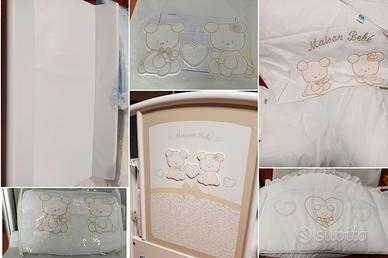 vendo bellissimo completo PALI MAISON BEBÈ composto da: 1.LETTINO 2.COMÒ+AFFASCIATOIO+BAGNETTO 3.MATERRASSO ANTISOFFOCO 4.PARACOLPI 5.PIUMINO+COPRIPIUMINO +LENZUOLO(nuovo) TUTTO IN PERFETTE CONDIZIONI SI TROVA IN PIANO TERRA .Lettino smontato. Aiutiamo a caricare. 1.lettino Caratteristiche Lettino Pali Smart Maison Bebe Lettino con struttura in faggio massiccio.Sistema di abbassamento della sponda con una sola mano grazie al sistema esclusivo "PRATICO PALI" Vernici e materiali atossici Quattro ruote piroettanti rivestite in gomma "antigraffio" con due sistemi di freno Rete ortopedica interamente realizzata a doghe di legno con due posizioni: per il neonato si sistema in alto, facilitando così il lavoro alla mamma, si sistema più in basso quando il bambino sa già arrampicarsi e ha bisogno di sponde alte per non cadere. Guaina protettiva atossica sulle sponde (I bimbi tendono a succhiare e mordere tutto ciò che incontrano) Dimensione Lettino Pali Smart Maison Bebe:133 x 72 x 101h cm 2. Cassettiera Fasciatoio Vaschetta anatomica Pali Maison Bebè Materassino-fasciatoio sfilabile con due sponde sicurezza, in materiale plastico senza ftalati per garantire massima comodita, igiene e sicurezza Primo cassetto apribile anche quando la vaschetta e inserita nel mobile 4 ruote piroettanti, di cui quelle anteriore dotate di freno. Ruote marchiate Pali, per una sicura garanzia Comodi e ampi cassetti, con guide metalliche. Vaschetta anatomica Dimensioni Cassettiera Fasciatoio Pali Maison Bebè Dimensioni:76 x 45 x 90h cm 3.Pali Completo Piumone Sfilabile Maison Bebè Tessuto 100% cotone con applicazioni ricamate. Piumone Sfilabile composto da 3 pezzi: piumotto sfoderabile con imbottitura interna estraibile da 300 gr.,federa per cuscino , paracolpi tre lati con imbottitura in poliestere da 600 gr. Materasso per Lettino Pali Evolution antisoffoco Dimensioni:124 x 64 x 10 Ritiro in zona piazza Dateo piano terra.