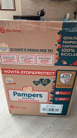 Vendo pacco completo di baby dry mutandino taglia 6 per avvenuto spannolinamento. La scatola é nuova, aperta solo per le foto.