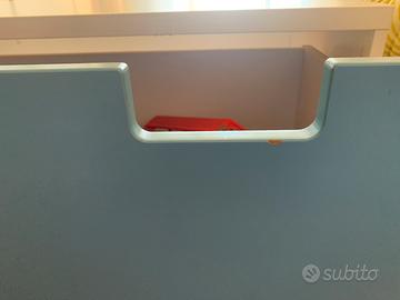Vendesi panca porta-contenitore Ikea. Bianco con cassettone azzurro. In ottime condizione al netto del segno visibile in foto accanto alla scanalatura. Ritiro dal venditore.