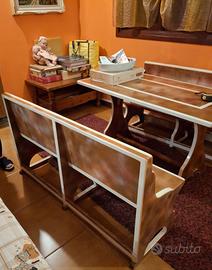 Vendo due panche e un tavolo in legno fatti a mano per bambini, hanno dei piccoli graffi ma sono in ottimo stato e sono stati usati pochissimo .