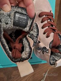 Panchic bambina, nuove con scatola, nr.30, doppi Lacci, colore rosa chiaro, con pelo, chiusura con lacci e cerniera.