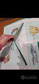 5 TASCHE DI VARIE DIMENSIONI RICAMATE PERSONALMENTE A PUNTO CROCE SU TELA AIDA VERDE ACQUA.