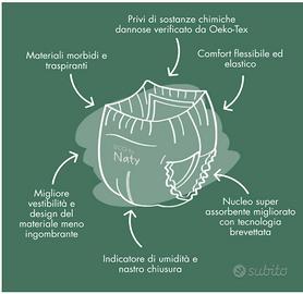 ASSORBENTI E COMODI: sono morbidi, elastici, confortevoli e facili da indossare e sfilare per un cambio di pannolino senza problemi. Il nucleo di pannolini ecologici ad alta tecnologia manterrà il bambino asciutto giorno e notte.